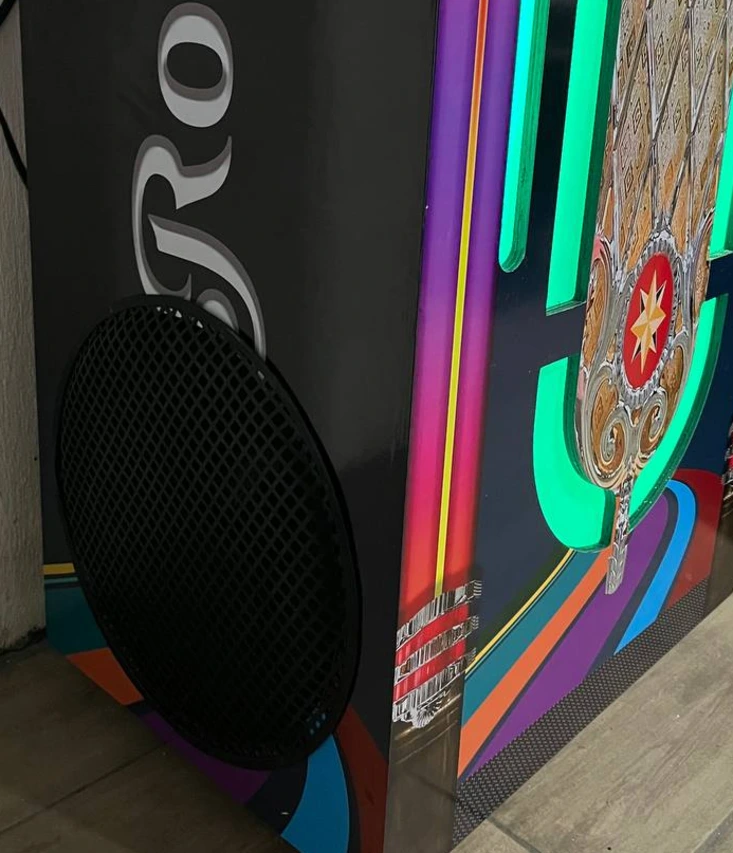 La rockola incorpora una bocina de 15 pulgadas con un sistema de audio diseñado para uso comercial, ofreciendo volumen alto, sonido claro y bajos que se sienten, ideal para bares y locales amplios.
